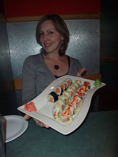 Then we had another date night, Kevin's pick. Even though I grew up in a coastal town, I had never had sushi. I'm not a huge seafood fan, so I had never sought it out. Kevin loves it and finally got me to try it, convincing me that it's not just "food" it's an "experience." And ... I actually really liked it. A lot. It had excellent flavor and texture. I will definitely try it again.
